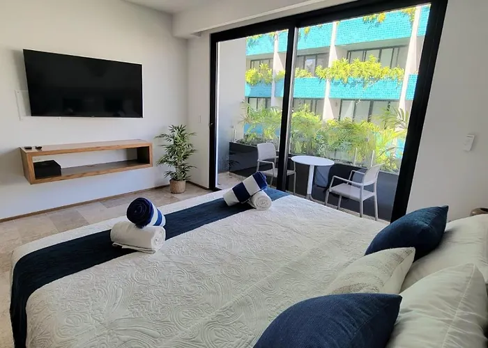 The 45 m² Tu Hogar De Lujo En El Corazon De Playa Del Carmen Apartment includes a terrace and is situated just moments from the Quinta Alegria Shopping Mall. Offering access to a rooftop swimming pool, the apartment is merely a 6-minute walk from the Quinta Avenida.